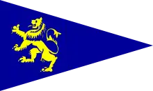 Five known examples of Britannia's racing flags are preserved, one presented by Philip Hunloke to the Royal Cornwall Yacht Club, in whose regattas Britannia was often a competitor between 1894 and 1935, the second at the Royal Northern and Clyde Yacht Club at Rhu and the third at the Royal St. George Yacht Club, which held two regattas in Kingstown for the first season of the RYA linear rating rule in 1896. Britannia's skipper William G. Jameson had lost both races to the new Meteor II and Ailsa. The fourth known flag is held in the vexillology collection in the National Maritime Museum at Greenwich.[2] The fifth example is now on display at the K1 Britannia base in Cowes on The Isle of Wight, on loan from the family of a former member of the crew who served as Yeoman Signaller on Britannia during the 1931 - 1933 racing seasons inclusive.