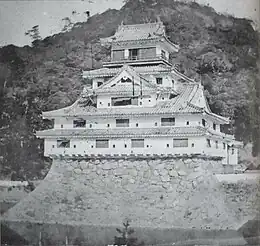 ![]() The tenshu (main keep) of Hagi Castle, in the early Meiji Period | |
