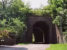 Near the southern Harz, the Mittelbau-Dora concentration camp was established to the northwest of Nordhausen in 1943; it was attached to vast underground weapons factories. To remove through traffic from this area, construction was begun on a connecting line from the South Harz line near Osterhagen to the Halle–Kassel line between Nordhausen and Werther. The construction of this Helme Valley Railway (Helmetalbahn) cost the life of several hundred forced labourers. It was never completed and its route was disrupted in 1945 by the inner German border. Remnants of its embankments and bridges are still visible today.[4]