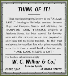 This ad from 1912 announced the start of sales in the southeastern or Allan Farm portion of Hampton Park Terrace.