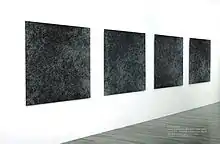 Danuser has been invited to contribute to international events such as the biennales in Venice and Lyon.[2] He is one of the first photographers to have taken the conceptually compelling step of presenting his large-format tableaux on the floor in a museum exhibition.[4] In the 1980s Danuser embarked on his cycle In Vivo, completing it in 1989.[1] Contemporaneously he produced architectural photographs in the project Partituren und Bilder/Scores and Pictures. In 1990 Danuser won the competition for the large-scale design of the walls at the University of Zurich-Irchel, which led to the Institutsbilder (1992).[1][2] He later completed another project in an architectural context, the Schiefertafel Beverin (2000–2001).[5] The Frozen Embryo Series, made in the 1990s, a follow-up of In Vivo, also prefigured two ongoing works, The Erosion Project and Entscheidungsfindung – Decision taking.[6]