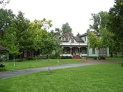 The house also exhibits a Carpenter Gothic style, influenced by Swedish architecture.[3] In the backyard of the home is Hanson's original 1871 wood-frame cabin, where the Marquette city charter was signed. The wood-frame cabin was originally attached to his 1869 log cabin. The houses were owned by the Hanson family for over 100 years. The Hans Hanson House has been restored to its original appearance and was added to the National Register of Historic Places in 1982.[1]