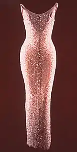 Monroe's iconic dress was designed by costume designer Bob Mackie who was hired to sketch the design for the leading fashion designer of the time, Jean Louis who paid $1,440.33 (equivalent to $10,723 in 2022[12]) for its construction. The dress sold in 1999 at an auction in New York City for over $1.26 million (equivalent to $2.09 million in 2022[12]).[13][7] Canadian billionaire Jim Pattison subsequently purchased the dress on November 17, 2016, at a Los Angeles auction for $4.8 million.[14]