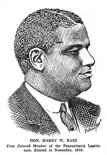 Harry W. Bass (4 November 1866 – 9 June 1917) was an American lawyer and politician who became the first African American to serve in the Pennsylvania General Assembly, winning two consecutive terms in the state house in 1911 and 1913 to represent the seventh ward of Philadelphia.