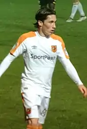 He scored his first professional goal in his second appearance a week later in a 0–2 away win at Nottingham Forest.[24] The following month, he scored two goals and recorded two assists to help Hull away from the relegation zone and won the club's Player of the Month award for March.[25] He also won the EFL Championship PFA Player of the Month award for April 2018.[26] He scored 7 goals in 13 league appearances for Hull during his loan spell.[27]