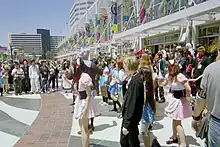 On May 30, 2007, the SOS Brigade Invasion Tour was announced for Anime Expo 2007 on June 30. Aya Hirano, Yuko Goto, and Minori Chihara were part of this event "being flown in directly from Japan". Anime Expo attendees were able to participate in the ASOS Dance Contest held on Friday and the winner would have the chance to dance on stage with the guests of honor.[60] Ever since the event was announced, advance ticket sales for pre-registered attendees have caused AX officials to cut down on the number of tickets sold due to the overwhelming number of advance tickets sold (despite the event being free of charge to attend).[61][62]