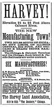 Advertisement by The Harvey Land Association that appeared on November 8, 1890 in the Chicago Daily Tribune