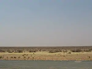 Away from the river Hay is surrounded by flat, mostly-treeless plains, predominately of grey clay and red earth soils. Saltbush shrublands (Atriplex sp.), with an understorey of grasses and forbs, was the dominant plant community at the time of European settlement. However severe depletion of the saltbush has occurred after years of overstocking, damage by rabbits and the broad-scale agriculture of recent decades, particularly in areas along the river and proximate to irrigation canals. The plains surrounding Hay feature a complex system of shallow creek beds and dry lakes, interspersed by wind-created sand-ridges where Cypress-pine (Callitris sp.) is often found growing.[14]