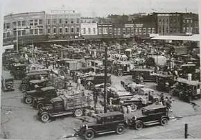 The Haymarket referred to an outdoor farmers' market in Louisville, Kentucky.[1] The market occupied the block between Jefferson, Liberty, Floyd and Brook streets.[1] A small section extended south down Floyd Street. It was established in 1891 on the site of the city's earliest rail station, belonging to the Louisville and Frankfort Railroad.[1] The site had been cleared after the station relocated to First Street in 1881.