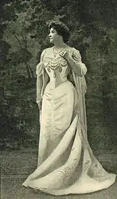 Some writers expressed surprise at Melba's playing the last of these roles, since it was merely a supporting part in the opera. She played it on many occasions, saying in her memoirs, "Why on earth a prima donna should not sing secondary rôles I could not see then and am no nearer seeing to-day. I hate the artistic snobbery of it."[15] She sang the role opposite the Carmens of Emma Calvé,[2] Zélie de Lussan[35] and Maria Gay.[36] Marguerite de Valois, too, is not the leading female role in Les Huguenots, but Melba was willing to undertake it as seconda donna to Emma Albani.[2] She was generous in support of singers who did not rival her in her favoured roles, but was, as her biographer J. B. Steane put it, "pathologically critical" of other lyric sopranos.[3]