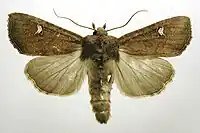 Helotropha leucostigma, the crescent, formerly Celaena leucostigma is a moth of the family Noctuidae. It is found in the Palearctic realm (Europe, Russia,[1] Armenia, Turkestan, Siberia, Russian Far East, Mongolia, Amur, Korea, Japan, and northeastern China).