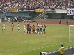 Henan Football Club (Chinese: 河南足球俱乐部), previously Henan Jianye (Chinese: 河南建业), is a Chinese professional football club based in Zhengzhou, Henan, that competes in the Chinese Super League, the top tier of Chinese football. Henan plays their home matches at the Hanghai Stadium, located within Guancheng. Their owners are the Jianye Residential Group (China) Co., Ltd., which is part of the Central China Real Estate Limited. Their name refers to Jianye, a former name of the ancient city of Jiankang.[2]