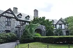 The house was built in 1927–28, on the site of an earlier Tudor house that burned in 1925. It was the centerpiece of a large country estate (more than 300 acres (120 ha) spanning the Weston-Wellesley line) of Edward Peirce, the owner, made a fortune in the wool business. The design was by Coolidge, Shepley, Bulfinch & Abbott, and may have reused portions of the previous estate house or its foundations. The estate also originally had a number of outbuildings, of which two have survived in altered forms as parts of nearby houses built on the former estate. The property passed into the hands of Roger Babson, before a nearly six-acre parcel was donated to Northeastern University by one of its trustees, Ernest Henderson. The school used the property as part of its continuing education programs and as a conference center. The house is the last surviving grand Tudor mansion of several that were once in Weston.[2] The residence was closed for event functions as of December 31, 2014.
