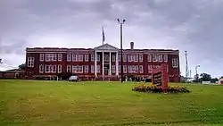 Henrietta-Caroleen High School, also known as Tri-High, Tri-Community Elementary, and Chase Middle School, is a historic high school building located near Mooresboro, Rutherford County, North Carolina. It was designed by architect Leslie Boney (1880-1964) and built in 1925. It is a two-story on basement, "T"-plan, Classical Revival style red brick building. The front facade features a monumental, two-story, portico with a denticulated pediment supported by fluted Corinthian order columns. A brick gymnasium addition was built in 1935 and a hip-roofed, concrete block, addition to it was added in 1952. Also on the property are the contributing cafeteria building (1955, 1967), and a World War II Commemorative Marker (c. 1950). The building houses Thomas Jefferson Classical Academy, a public charter school.[2]