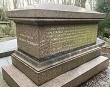 He died in office in 1931 aged 64[5] and is buried in the Buckingham family vault in Highgate Cemetery (west side).