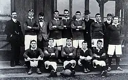 In total there were eight matches in South America and sixty goals were scored with only three being against Nottingham Forest, who did not lose a match on the tour. It is said that the Argentinian team Club Atlético Independiente changed their colours to red after seeing the Nottingham Forest players play.[3] The tour started at Montevideo and then had a number of matches against Argentinian teams, firstly at Santa Fe and then in Buenos Aires.[4] The party consisted of (see picture) Bob Norris, Harry Linacre, H.Hallam (Secretary), C.Clifford, Charles Craig, William Shearman, H.S. Radford (Vice President), Sam Timmins, Alf Spouncer, Fred Lessons, (Front Row L-R) – Walter Dudley, Thomas Davies, Thomas Niblo, George Henderson and Albert Holmes.[4]