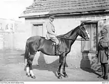 Macandrew riding in Aleppo in 1918. To his right is his risaldar-major, Mohid Din Khan