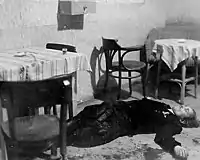 In September 1946 in Operation Lawina, organized by a secret police mole in Flame's unit, the UB convinced him and many of his men that they could be transported to the American zone in Germany.[2][5] In actuality while waiting to be transported out of Poland, around 200 of his soldiers were first drugged, then stripped and taken into the forests and murdered.[5][6] "Bartek" himself escaped from the transport when he realized that something was not right.[2] The exact place of the execution site is unknown but the forests near Łambinowice,[6] Hubertus[5] or the village of Barut[7] have been proposed. After this incident the initiative passed to the secret police and Flame found himself hunted and more and more of his men were caught and killed. Individuals implicated in the annihilation of the Flames'-lead NSZ units were: Henryk Wendrowski (UB agent who penetrated its ranks), Roman Romkowski (Natan Grinszpan-Kikiel) who along with Marek Fink (Mark Finkienberg) devised and supervised the conduct of the Operation "Lawina". In 1970, Fink began to use the name Witold Jozwicki. Jan Fryderyk Zielinski, Polish Secret Police functionary stated that the murdered NSZ soldiers were buried in two pits, and further elaborated that "Neither [himself], nor other functionaries knew where [they were] going. When [they] arrived there, it became apparent that [they were] in Lambinowice. At night [they] cordoned off the entire area, and began operation in the morning. Wladyslaw 'Wladzio' Osobowski [who until 1959 was an UB functionary, and later lived in the Soviet Union] finished off the 'Bartek's' unit guard with a knife. Next, through opened windows, somebody threw two grenades into two rooms. After explosions however, most of them [the NSZ soldiers] [were] still alive. They started to run. They were shocked by both the explosions and the alcohol that they drank earlier. The whole area was surrounded, and all of them were captured. After they were detained, they were ordered to take their clothes off, and then naked, they were individually lead to a 3 meter deep pit where they were murdered; everyone with a shot to the back of the head. After the shooting, either a diesel fuel, and/or gasoline was poured on bodies, and clothes, and then it was set on fire".