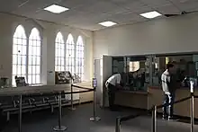 Accorded 'Secure Station' status in 2004,[1] the station has a staffed ticket office (signposted as a "Travel Centre"), self-service ticket machines, a café and indoor waiting rooms. Automated ticket barriers have been in operation since 28 February 2006.[2]