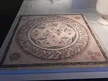 In 1968–1969, during excavations directed by archaeologist Gideon Foerster, at a section of Herod's burial tomb and palace hundreds of artifacts were found, including a copper alloy ring. The ring was overlooked but in 2018 it was given a thorough laboratory cleaning and scholarly examination. At the center of the ring is an engraved krater, or amphora similar in style to the monumental urn (handleless amphorae or acroteria) of Herodium [19] which is encircled by "partly deformed" Greek letters spelling out "of Pilates" in Greek. Although scientists were not sure about who is the "Pilates" mentioned on the ring, media published that it could have possibly belonged to Pontius Pilate. Archaeologist Roi Porat said that all explanations are equally possible for the owner of the ring: "It was important to publish a careful scientific article, but in practice we have a ring inscribed with the name Pilate and the personal connection just cries out."[20][21][22] While much of the debate has focused on the Greek name inscribed on the ring, the image is of equal significance and may further support that this was the ring used by Pilate's administrative assistant for sealing documents for Pilate. The image on the ring is possibly associated with Roman religious ceremonies (i.e., suovetaurilia, bacchanalia) and the imperial cult that were characteristic of the images on the coins that Pilate had minted during his term as governor.[19]