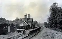 Hertingfordbury railway station was a station at Hertingfordbury, Hertfordshire, England, on the Hertford and Welwyn Junction Railway. It was a passenger station from December 1858 until 18 June 1951.[1] It had a single platform and a small goods yard to the east. The line was finally closed to all traffic in 1962.