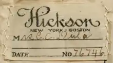 A 1911 "walking suit" by Hickson is in the collection of the Metropolitan Museum of Art,[20][21] along with a c.1913 evening dress,[22] a 1916 evening cape[23] and a c.1918 wool suit.[24]