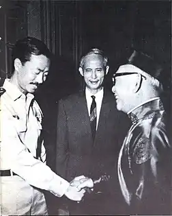 Phan Khắc Sửu was elected by the executive committee of the Revolutionary Military Council from the High National Council (Vietnamese: Thượng Hội-đồng Quốc-gia, Chinese: 越南共和國國家高級委員會) as its chairman on 27 September 1964, and was nominated as Head of State of South Vietnam on 24 October 1964. The Vice-Chairman was Nguyễn Xuân Chữ, and the General Secretary was Trần Văn Văn.[1] Dr Hồ Văn Nhựt was nominated for the role of Prime Minister of South Vietnam as he had the support from all religious and political parties. It was the first time since the First Republic that this position, of greater power than Head of State, was handed over to a civilian.