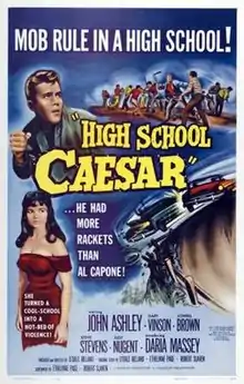 High School Caesar is a 1960 American film directed by O'Dale Ireland. Matt Stevens (John Ashley) as the "guy with the power" at his high school but everyone despises him. He isn't, after all, known for his fairness and generosity. The tables are turned, however, when his fellow students resent his power and show him up at a drag race.[2] Filmgroup released the film as a double feature with Date Bait.