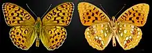 Fabriciana adippe, the high brown fritillary, is a large and brightly colored butterfly of the family Nymphalidae, native to Europe and across the Palearctic to Japan. It is known for being Great Britain's most threatened butterfly and is listed as a vulnerable species under the Wildlife and Countryside Act 1981.[2] Like other fritillaries it is dependent on warm climates with violet rich flora.