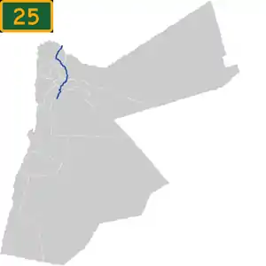 Highway 25, is a north–south highway in Jordan. It starts in at the Syrian border north of Irbid, on the road to Daraa and passes through Zarqa before going into Greater Amman Municipality, passing east of the city proper.