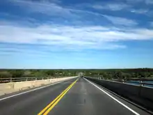 Highway 49 is a short highway that connects the county maintained roads that once formed a part of it. The province transferred the majority of the route to Prince Edward County and Hastings County in 1998. However, the Quinte Skyway (constructed in 1967)[6] and the section lying within the Tyendinaga Mohawk Territory remain under provincial jurisdiction. At the southern end of the skyway, the route connects with Prince Edward County Road 49, which continues south to Picton, as well as County Road 15 and County Road 35. At the northern end of the skyway, the highway intersects the former Highway 2, which travels east to the town of Deseronto. From there it travels north to the northern edge of the Tyendinaga Mohawk Territory,[7][8] after which it becomes Tyendinaga Township Road 2 for approximately 2.1 kilometres (1.3 mi) to the Highway 401 interchange.[1]