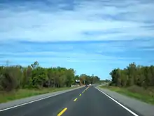 The current iteration of Highway 49 was created in February 1965, when the southern, discontinuous section of Highway 41 north of Picton was renumbered.[5] Prior to this, Highway 41 had two separate sections: one which ran north from Highway 2 at Napanee, and another that travelled north from Picton alongside the Bay of Quinte. The latter portion followed the present-day Prince Edward County Road 49 as far as Roblin Mills, where it curved to follow County Road 35. This road was known as the Lower High Shore Road; there was no road directly north from Roblin Mills until the 1960s. Highway 41 passed through Mount Carmel before ending at Cole's Wharf, where a ferry crossed to Huff's Wharf. The length of this section was 17.6 km (10.9 mi).[10][11]