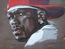 Rapping (also known as emceeing,[107] MCing,[107] spitting (bars),[108] or just rhyming[109]) refers to "spoken or chanted rhyming lyrics with a strong rhythmic accompaniment".[110] Rapping typically features complex wordplay, rapid delivery, and a range of "street slang", some of which is unique to the hip hop subculture. While rapping is often done over beats, either done by a DJ, a beatboxer, it can also be done without accompaniment. It can be broken down into different components, such as "content", "flow" (rhythm and rhyme), and "delivery".[111]