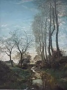 He married in 1868 and moved to Zaventem, but returned to Tervuren in 1870. These years were his best and most fruitful period,[2] with e.g. the painting De oude Haagbeukdreef. Tervuren, which won him the Gold Medal of the 1872 Salon of Brussels. In this period, he travelled in Belgium and abroad, painting along the River Meuse. It was his suggestion that led to the creation of the Société Libre des Beaux-Arts, an art circle of young Belgian artists, including Alfred Verwee, Félicien Rops, and Constantin Meunier, with honorary members from abroad like Corot and Millet, but also Honoré Daumier, Gustave Courbet and Willem Maris.[1]