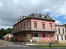 Several buildings were erected c. 1840/41, including the first Doncaster Inn (1841–1907). The economic depression of the early 1840s slowed development for a few years but gradually a business centre developed along Mackellar Street adjacent to Monkittee Creek and on the north-facing slope of Wallace Street. Proximity to creek water was obviously an incentive to spread along Mackellar Street as was, apparently, the disincentive of ascending the "Jew's Hill" (Benjamin Moses is shown as the owner of the block on the south east corner of Mackellar and Wallace streets). Surveyor Larmer purchased land and built the Royal Hotel c. 1845 (the present Museum). In Mackellar Street the three-storeyed Albert Buildings, later converted to a steam-driven flourmill, were used as shops by Hendricks and Jacobs ( still standing). On the corner of Mackellar and Wallace Streets was the Post Office and store (still standing). A District Council had been established in 1843.[1]