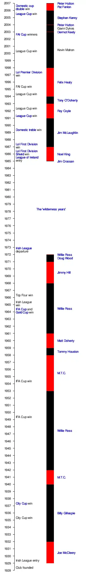 Fortunes began to improve for the club when team-captain, Peter Hutton, took the role of player-manager for a temporary period until a new permanent manager was found. The club became the first club in Ireland to be awarded a premier UEFA licence in February 2004.[30] The subsequent appointment of Stephen Kenny as manager later that year and the introduction of full-time football by the club helped these fortunes expand and the club soon began to regain past form. Kenny, later commenting on the situation upon his arrival at the club, said:
