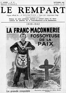 A 1942 issue of the periodical Le Rempart of the Ligue antimaçonnique belge accusing Freemasons of "burying" peace
