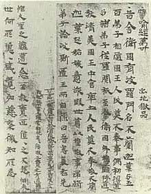 Textual culture seems to have been more developed in the south by the early 5th century, with individuals owning collections of several thousand scrolls. In the north an entire palace collection might have been only a few thousand scrolls in total.[26] By the early 6th century, scholars in both the north and south were capable of citing upwards of 400 sources in commentaries on older works.[27] A small compilation text from the 7th century included citations to over 1,400 works.[28]
