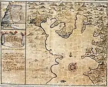 In 1625, The English and Dutch took joint possession of Saint Croix.[18] The island was later settled by the French too, leaving all three of these populations living in separate settlements.[17] A 1645 conflict between the Dutch and English settlers resulted in the Dutch population fleeing to the Islands of St. Eustatius and St. Martin. The French population sided with the Dutch and relocated to the island of Guadeloupe. Following the incident, the English colonists remained the sole political claimants to the island until 1650, when they were ambushed by Spanish forces from Puerto Rico. After the Spanish had forced the English settlers to flee, the Dutch thought the island safe to return to, but upon their return were also attacked by the Puerto Rican authorities.[17]