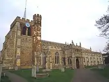 ![]() View from Market Square in Hitchin, with St Mary's Church in the background | |