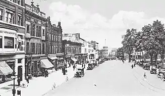 As of 1904, the building was residential; a groom's family celebrated his wedding breakfast at his Hoffman Building home.[18] That year, Sidney A. Baldwin, organist and musical director of the Morristown Church of the Redeemer, had her studio where she taught pianoforte in the Hoffman Building.[19] Circa October 1910, Morristown resident Arthur Day had his bike stolen from the hall of the Hoffman Building.[20] The Hoffman Building was still standing by 1923, when it housed Morristown Typewriter Service, a typewriter business by M. J. Conroy.[21]
