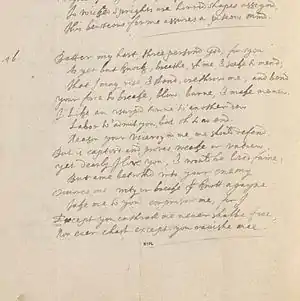 First line | Composition date[6] | "Original sequence" (BL MS Stowe 961) | Westmoreland MS (1620) | Poems (1633) | Grierson (1912) |
