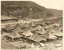 The camp was constructed on 160 acres (0.65 km2) of land near Ewa and Waipahu on the island of Oahu to hold internees transferred from the soon-to-close Sand Island camp.[13] It opened in March 1943.[14] An 8-foot (2.4 m) dual barbed-wire fence enclosed the camp, and a company of military police stood guard from its eight watchtowers.[15] Run by the U.S. Army, the camp's supervisor was Captain Siegfried Spillner.[16] The isolated location in a deep gulch led Japanese American internees to nickname it jigoku dani (地獄谷, "hell valley").[17] Of the seventeen sites that were associated with the history of internment in Hawaiʻi during World War II, the camp was the only one built specifically for prolonged detention.[8][9][10][11]