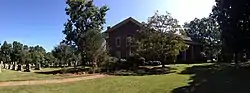 Hopewell Presbyterian Church is a historic Presbyterian church complex and national historic district located near Huntersville, Mecklenburg County, North Carolina. The church was built in 1833–1835, renovated and enlarged in 1859–1860, and expanded by a Sunday School addition in 1928. It is a U-shaped brick and brick veneer building composed of three connected blocks all covered with front-gable roofs. The church is a rectangular gable-front brick building standing on a low mortared fieldstone foundation and Greek Revival style design elements. Also on the property are the contributing pumphouse (c. 1925), cemetery gate (1845), and cemetery with burials dating to 1775. The cemetery contains one of the two largest collections of box and chest tombs in North Carolina. General William Lee Davidson of the North Carolina militia, killed in 1781 at the Battle of Cowan's Ford during the American Revolutionary War, is buried in the cemetery.[2]