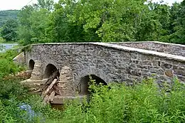 This historic American infrastructure element is a 75-foot-long (23 m), bridge with three spans, each of which measures 16-foot-long (4.9 m). It was erected before 1860, and crosses Conodoguinet Creek.[2]