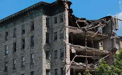 In 1998, the hotel closed after its owner was unable to pay a $227,000 electric bill.[7] The hotel was essentially abandoned after that point, and a small fire broke out two years later. The fire and lack of maintenance quickly took its toll on the buildings, which then suffered from vandalism, leaking roofs, and the freeze-thaw cycle the area experiences.