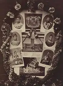 - ↑ Liliuokalani 1898, pp. 1–2, 104–105, 399–409; Pratt 1920, pp. 34–36; Allen 1982, pp. 33–36; Haley 2014, p. 96; Gregg 1982, pp. 316–317, 528, 571, 581