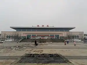 Huainan East Railway Station is located in Datong District, Huainan, Anhui Province. It is served by the Hefei–Bengbu high-speed railway. A new economic development zone called Binhu New Area (滨湖新区) is planned to be built near the station.[2]