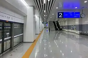 Huashanzhen railway station (Chinese: 花山镇站) is an underground railway station located in Huadu District, Guangzhou, Guangdong, China. It opened with the Eastern section of the Guangzhou–Foshan circular intercity railway on 30 November 2020.[1][2]