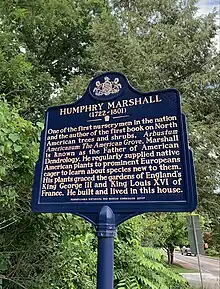 - 1 2 3 Schooler, Alice Kent (December 15, 1986). "National Register of Historic Places Inventory—Nomination: Humphry Marshall House". National Park Service. Retrieved July 3, 2009. with Photos, exterior and interior, from 1986 and other dates)